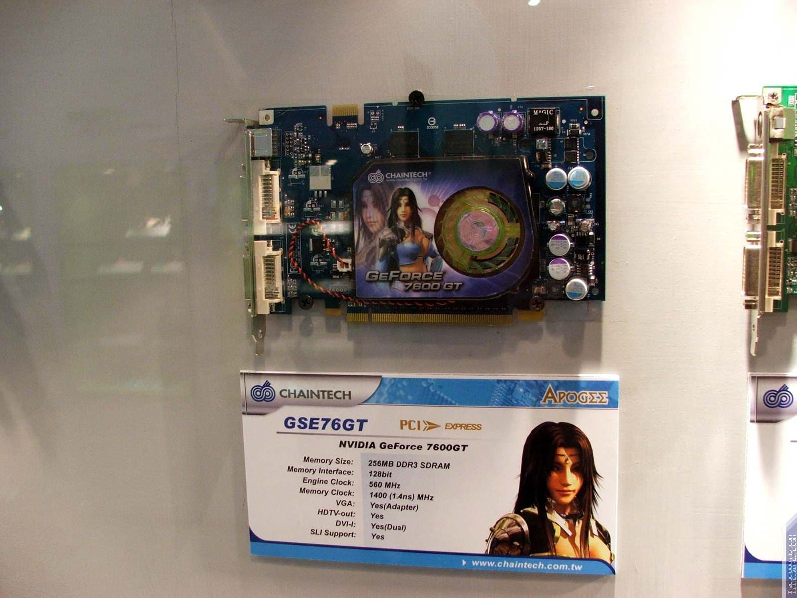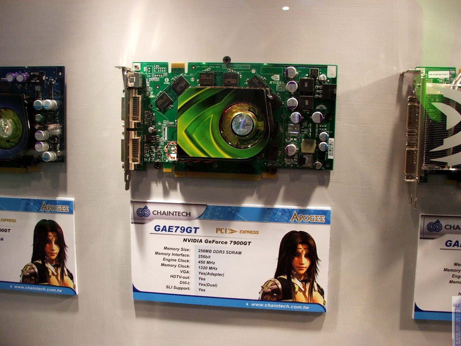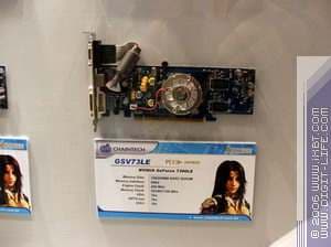 Ну и как я уже ранее говорил, производство видеокарт будет также в центре внимания новой компании. На стенде было представлено достаточно большое количество новинок в этой области. Надо заметить, что Chaintech по-прежнему остается приверженцем только одного производителя графических процессоров — NVIDIA.