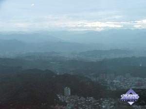 Во втором ряду фотографий — вид на восток, вдали в тумане видна башня Митцукоши, она была самым высоким зданием Тайпея до 101. К сожалению, на ней обзорную площадку закрыли.