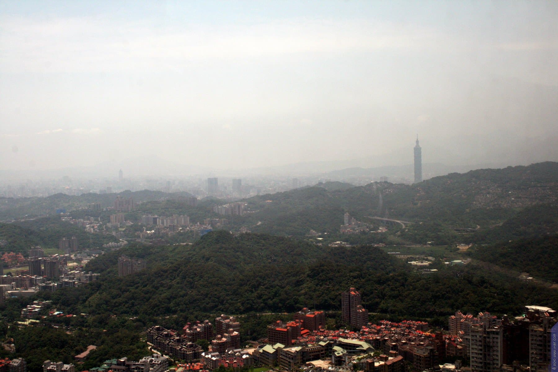 Собственно, чтобы посмотреть на Тайбэй сверху, поглазеть на удивительную панораму гор, из которых самым непостижимым образом торчит небоскреб Taipei 101, мы сюда для этого и прибыли.