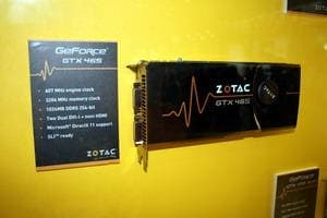 Разумеется, звездами экспозиции были видеокарты последнего поколения от NVIDIA — Fermi — GeForce GTX 4xx серии. Причем как стандартные, так и с повышенным клокингом и снабженные уникальными системами охлаждения. Эти карты относятся к серии AMP Edition. Очень хрупкие и изящные кулеры с кучей тончайших лепестков изготовлены компанией Zalman. В скором времени у нас выйдет материал по этой серии видеокарт от ZOTAC.