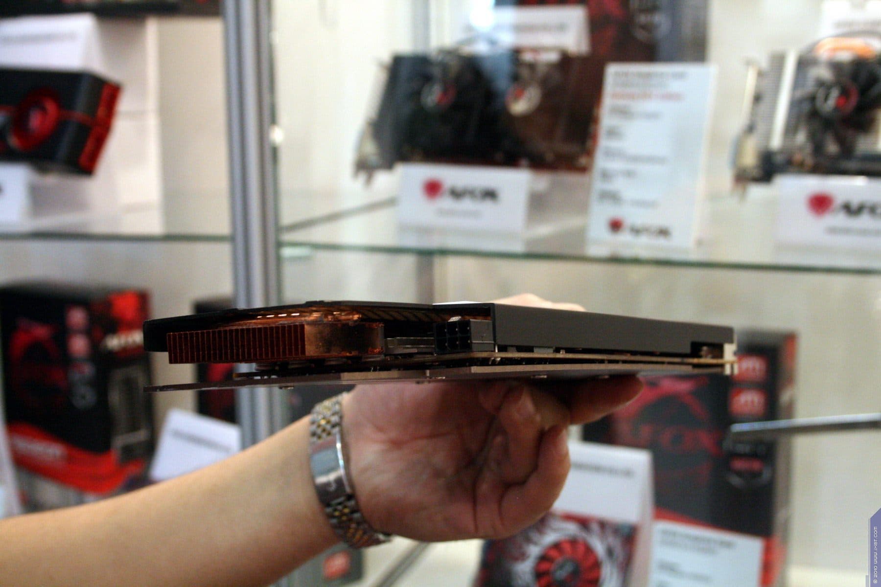 Однако разочарованием стало то, чем же решила похвастаться компания HIS. Ее топ-менеджер Питер Йенг без тени смятения, даже с гордостью, демонстрировал… кабели DVI-to-DP, DP-to-HDMI, а также… фонарик, работающий на солнечных элементах ценой в… 30 долларов США (это не опечатка, тридцать долларов США!). Да, уже как некий побочный продукт лежала и видеокарта Radeon HD 5570 с пассивной СО.