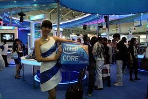 Просто несколько кадров из зала. Компания Intel имела просто колоссальных размеров стенд округлой формы, при этом, как обычно, на стенде раздавали всякие подарки и сувениры. В том числе и надувные кубики. Неподалеку от зала, в специальной комнате (как можно было заметить через открытую дверь) сидели бедные китайцы и надували сотнями эти кубики (разумеется не ртом, а с помощью спецнасосов :-))). И ради чего? Чтобы получившие такие кубики тут же ходили по залу, тужась и не менее тщательно сдувая их.