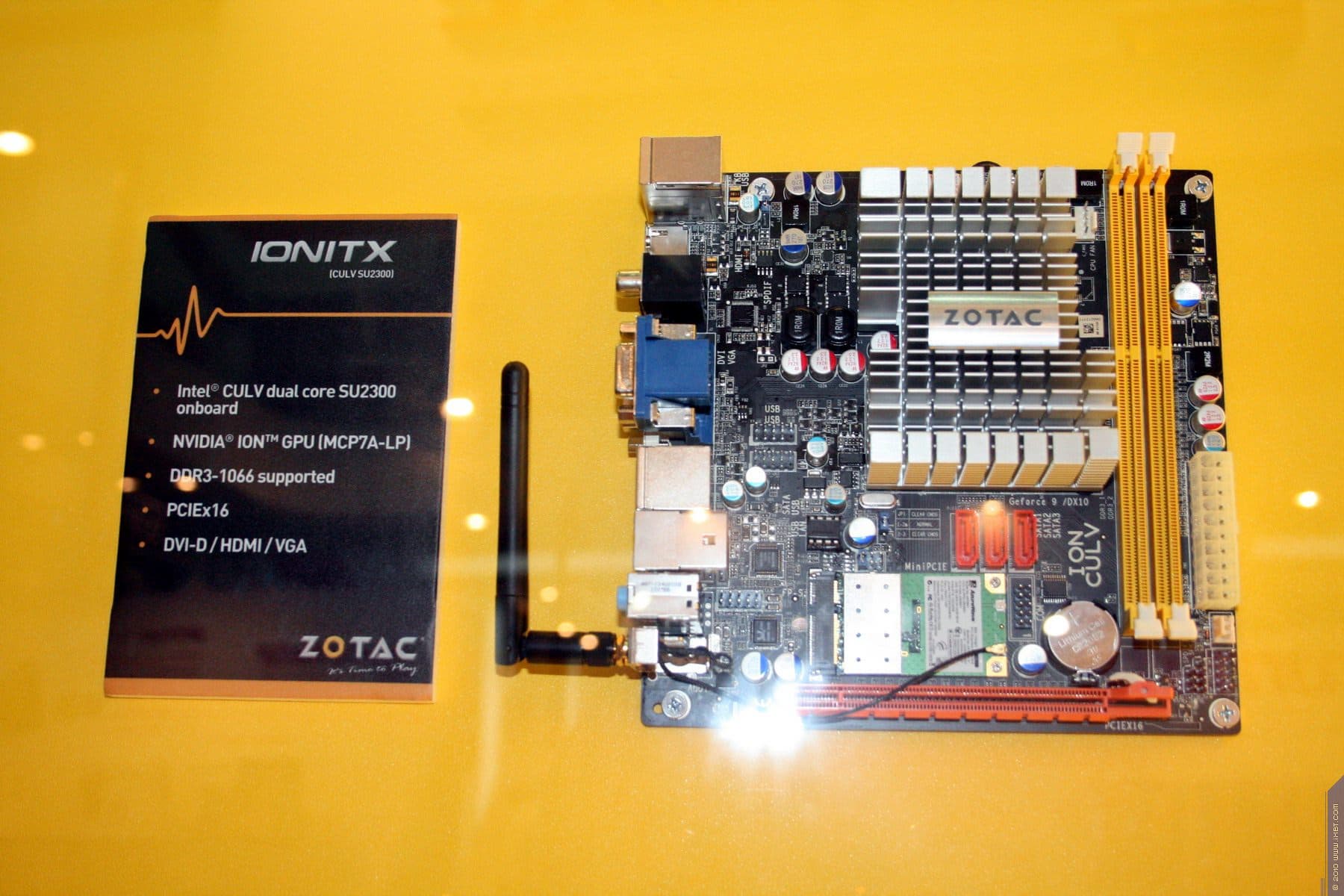 Кроме видеокарт ZOTAC демонстрировал и другие продукты, например, платформу ION от NVIDIA, как и другие мини-системы, из которых собираются маленькие компьютеры, а также мультмедийные центры с расширенными функциямм.