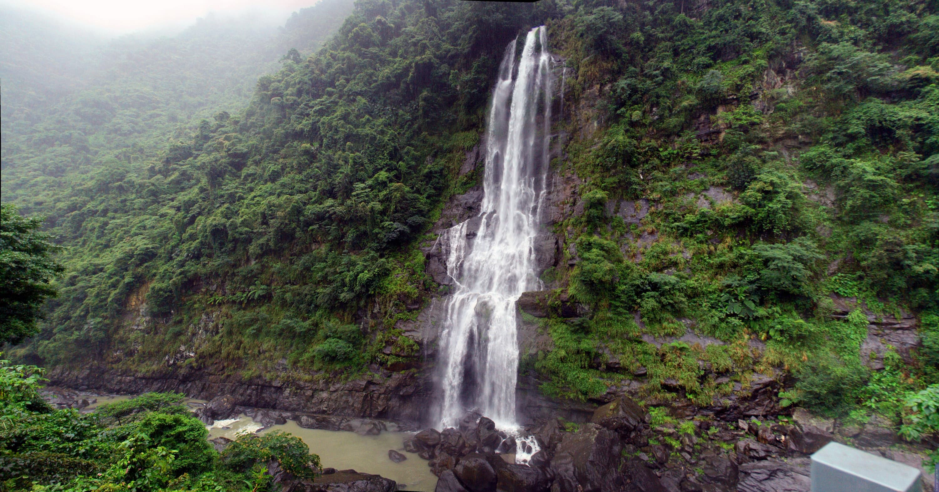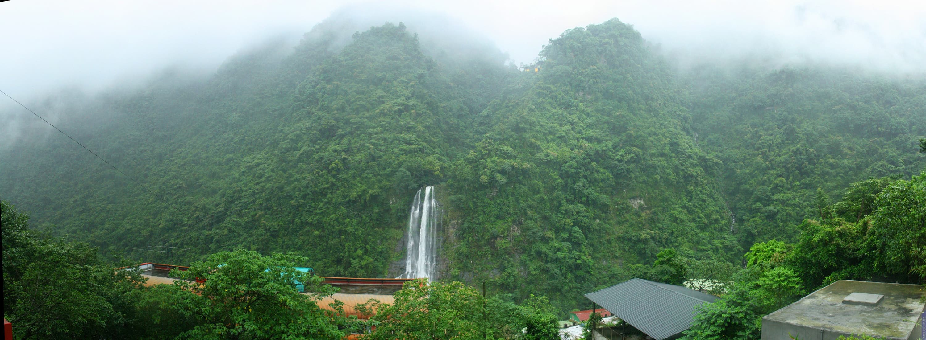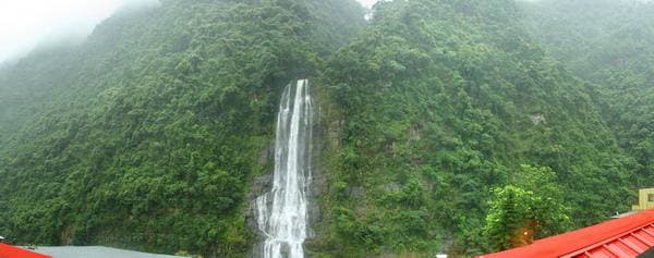 Умные тайваньцы сразу сообразили, что это место особой красоты, и наверху, там где река превращается в водопад, соорудили множество террас, а затем провели туда и канатную дорогу с другого берега реки, где поселок. На террасах около водопада имеется большое количество буддистcких храмов и часовен. Учитывая, что террасы соединены лишь лестничными пролетами, путь по всему тому парку не такой уж и легкий. И это полностью вписывается в концепцию буддизма, где по возможности путь к храму делается заведомо тяжелым, чтобы каждый молящийся преодолел некоторые трудности, пока доберется до алтаря.