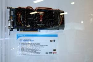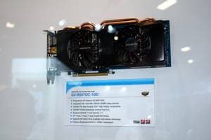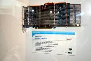 А что касается самой экспозиции, то по видеокартам она была крайне богатой и интересной. Ведь Gigabyte славен не только тем, что выпускает весь ассортимент видеокарт (на базе процессоров как NVIDIA, так и AMD), но и своими уникальными разработками в области устройств охлаждения для видеокарт, а также суперразогнанными вариантами ускорителей. Кроме того, максимально используется возможность установки пассивных систем охлаждения (без вентиляторов). Мы изучали такие продукты не раз, и потому повторяться не стану.