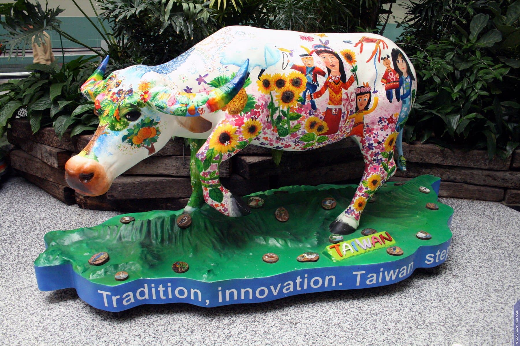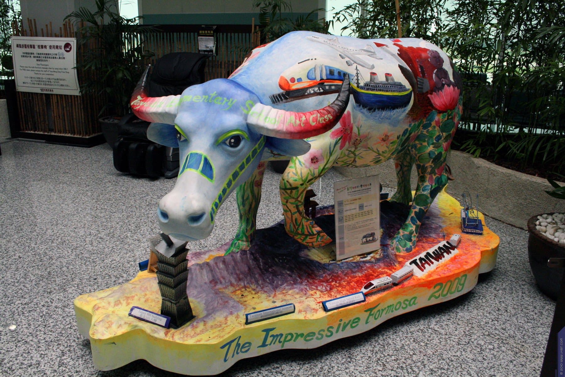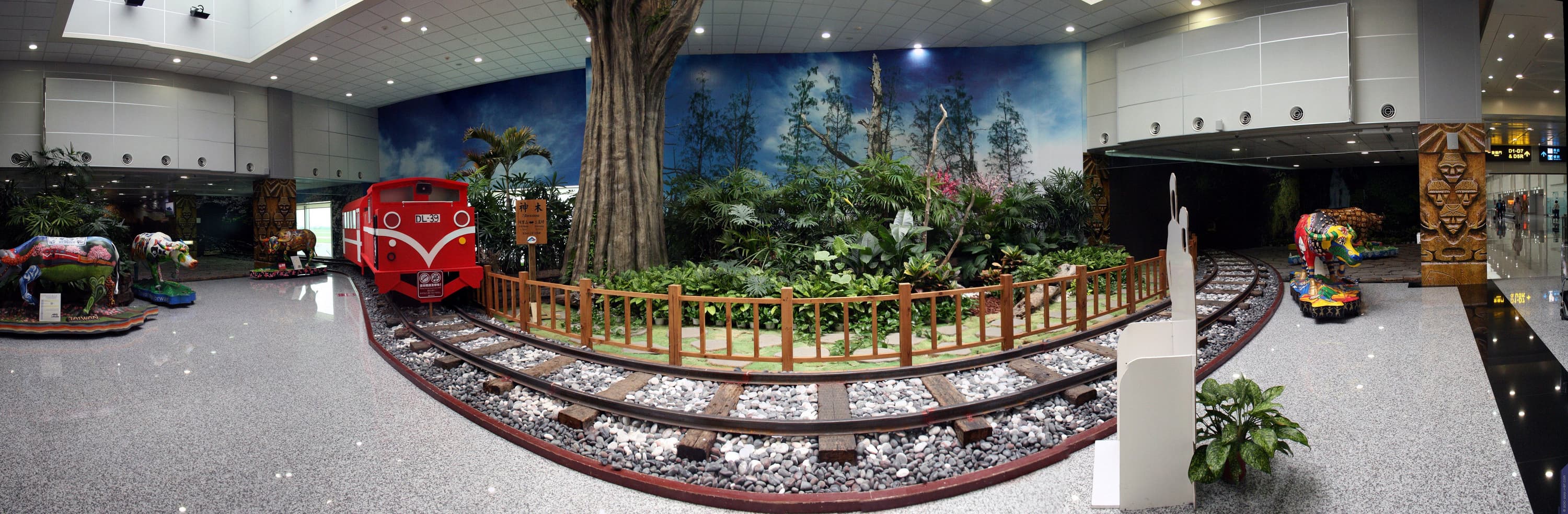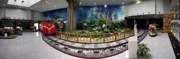 Ну в конце концов четко за пару минут до начала регистрации та же стайка девочек пришла назад, и после нужных процедур я переместился уже в зал ожидания. Он тянулся длинной кишкой вплоть до первого терминала, хотя между ними ходит специальный поезд. В залах-отсеках, которые скрашивают ту тоскливую «кишку», можно увидеть картины из жизни Тайваня, выполненные с помощью макетов и прочего снаряжения.