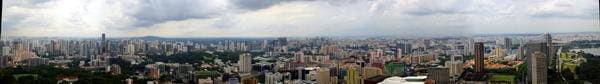 На следующий день я перебрался в другой отель (не потому, что этот список… а так было запланировано), откуда с 63-го этажа получил вот этот панорамный снимок Сингапура.