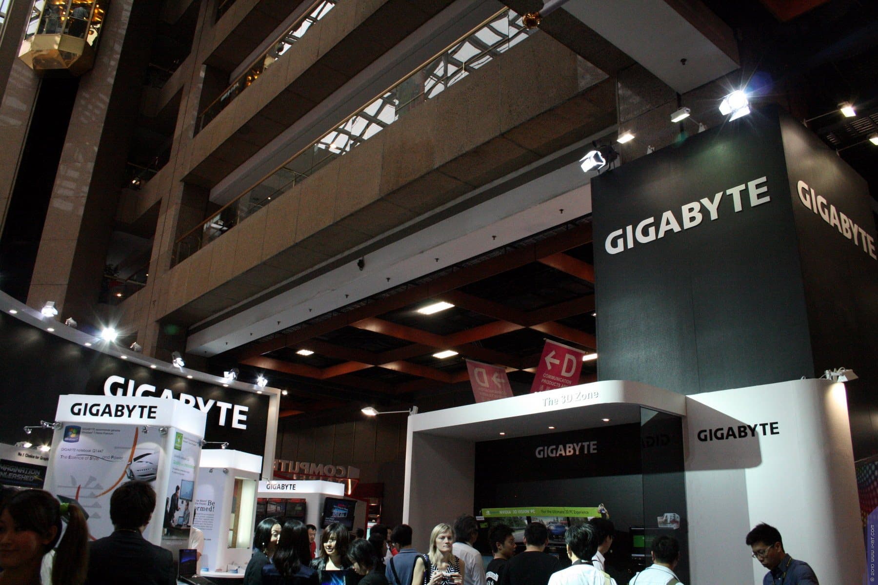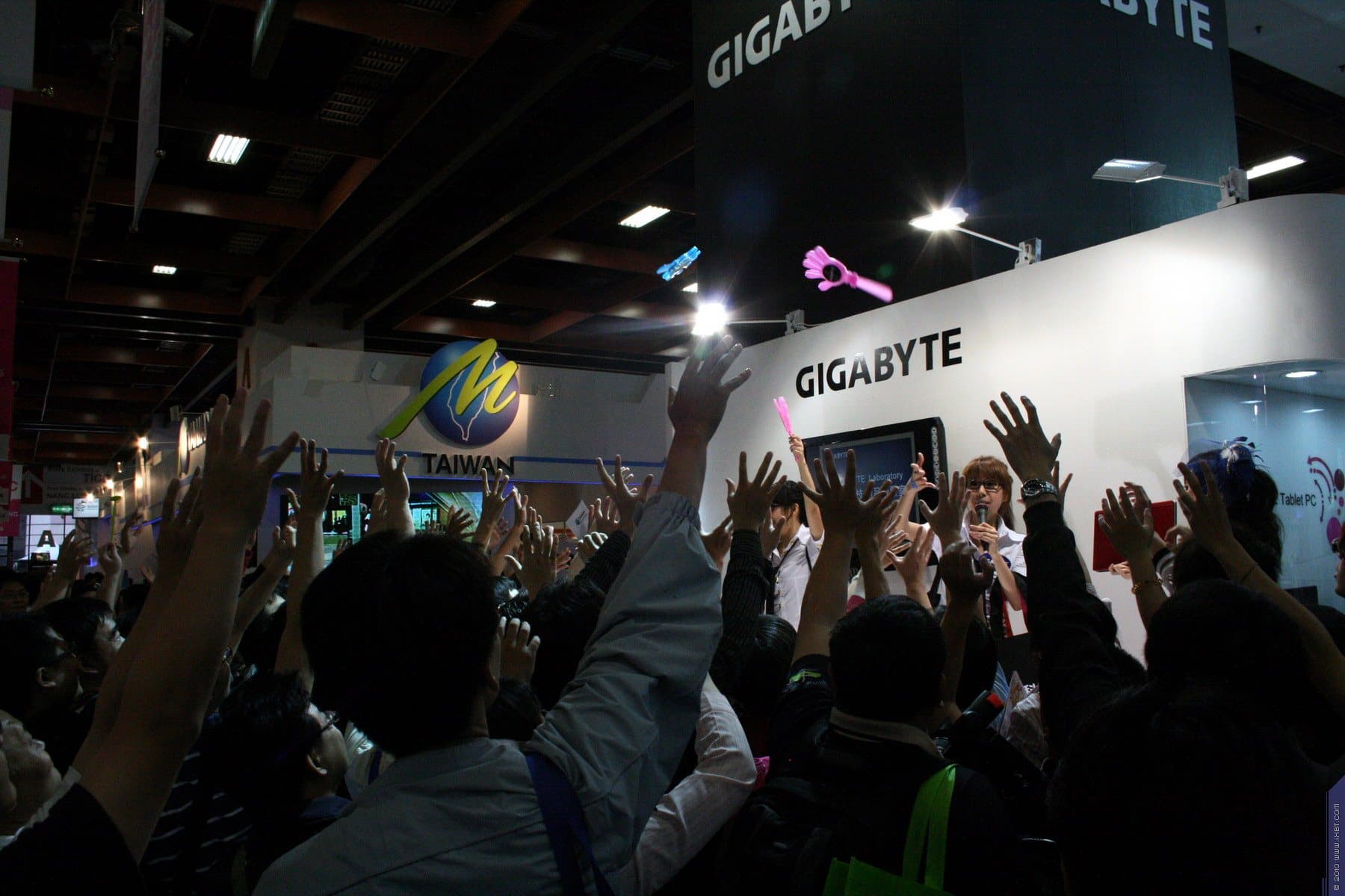 В том же зале особняком от всех остальных маститых брендов, сосредоточившихся в Nangang, расположился стенд компании Gigabyte. Вот уж где поистине было веселье по раздаче «халявы» в виде сувениров, то и дело слышались голоса девочек-призывалочек с криками «G-I-G-A-B-Y-T-E!», просто до хрипоты просящих публику поддержать скандирование названия компании. В знак благодарности раздавались безделушки. Все это есть в видеоролике, который я представлял в третьей части.