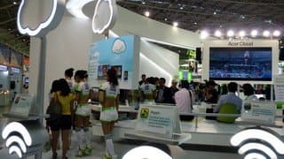 Во-первых, явно ощущалось, что посетителей стало меньше. Я веду речь о специалистах, которые регистрируются и посещают выставку, получая бэйдж-приглашение. О публике, покупающей билеты и идущей просто «поглазеть», я не говорю: таких всегда будет много, тем более, как выяснилось, любителей бесплатных сувениров и на Тайване хватает :-) Кстати, о сувенирах. Опять же бросилось в глаза, что их стало в разы меньше. Просто на порядок меньше. Компании стали экономить и на этом. Раньше ручки и прочие безделушки чуть-то не каждому посетителю давали просто так, а теперь просят, например, сфотографироваться с плакатом «Я люблю (имя компании)» и потом только дарят ручку. У того же стенда Gigabyte, где раньше раздавали всю эту ерунду просто пачками, выбрасывая в толпу, орущую название фирмы, теперь хитрые девчонки доставали хороший сувенир, например, полотенце с логотипом компании, болтали с публикой, рекламировали чего-то, а когда приходила пора раздавать подарки, — клали это обратно в сумку, и давали людям чушь всякую в виде надувных палочек. А потом снова, чтобы толпу завести, доставали полотенце, дразнили им и клали обратно в сумку. Экономят даже на таких мелочах.