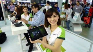 На стенде ASUS две подружки фотографировали всех подряд, чего-то делали с камерой, и потом падали от смеха, смотря на экран… При этом ведя театральные диалоги с жестикуляциями.