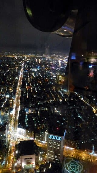 | Всё, устали… Впереди вечером еще ряд встреч, а сейчас полезли (разумеется, не по стенам, на лифте) вот на эту башню снова, благо погода установилась весьма хорошей. | ![]() |