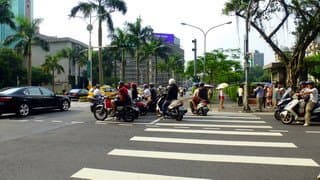 | Вид оттуда же: отлично видно, как при включении зеленого сигнала светофора орда скутеров просто срывается с места, несясь этаким эскортом впереди потока машин. | ![]() |