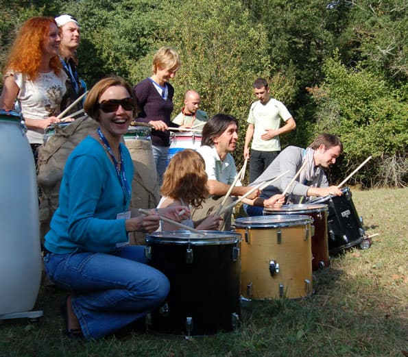 Следущий день был посвящен выездным развлекательным мероприятиям. Днем участники конференции смогли посетить Алуштинский заповедник, где их ждал пикник-обед в татарском стиле и насыщенная развлекательная программа: всевозможные конкурсы и даже экспресс-курс обучения игре на ударных инструментах.