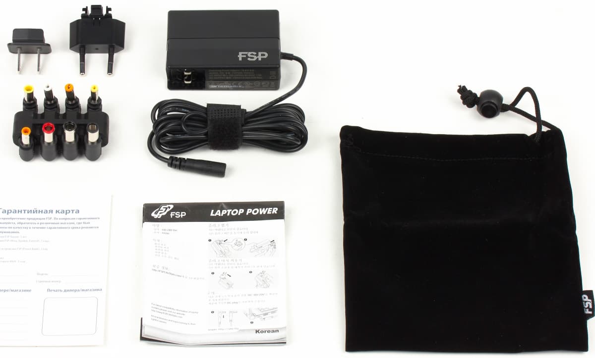 Комплектацию можно назвать вполне достойной — владелец может пользоваться адаптером в ряде стран и с разными ноутбуками, но при этом не беспокоясь о том, как упаковать комплект. Однако, как и в случае с другими универсальными адаптерами, перед покупкой мы настоятельно советуем проверить, подойдет ли один из имеющихся переходников к вашей конкретной модели ноутбука, причем не просто вставив переходник в разъем питания, а еще и включив ноутбук с адаптером в сеть.