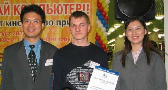 Ведущий задает какие-либо задания и если вы правильно выполняете их, вам вручается приз от спонсоров Gigabyte, Genius, IntelPro или Kingmax. Надо сказать, что вопросы подготовлены довольно каверзные, о компаниях-спонсорах и просто о компьютерной тематике. Помимо вопросов есть еще масса увлекательных конкурсов, которые помогают скоротать время, пока участники собирают компьютер на время. Естественно, чем сложнее задание, тем более интересный приз вы получаете.