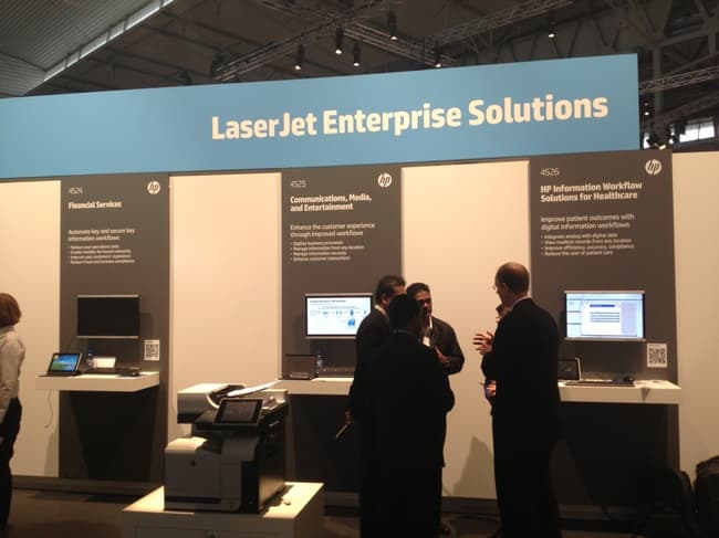 Все эти задачи решают системы managed print services — ПО, которое позволяет не только сканировать печатать, но раскладывать, обрабатывать документы и пр. Это ПО должно быть увязано и с инфраструктурой, и с оборудованием (принтерами, сканерами и МФУ). Впрочем, сколь разветвленные возможности управления ни делай, у клиента всегда найдется какая-то узкоспециализированная задача. Поэтому НР предоставляет для своей техники API, которые позволяют клиенту самостоятельно написать нужное расширение именно под свои задачи. Расширение также может написать партнер НР и продавать его вместе с техникой. Приятной особенностью API от НР является универсальность интерфейса — написанные расширения будут работать с любой техникой этого производителя. Кстати, на выставке я попал на одну из демонстраций работы ПО — действительно, оно позволяет очень гибко настроить сканирование и печать, позволяя в дальнейшем избавить работников от лишней настройки. Но смысла закапываться в детали в этом материале нет, а интересующиеся представители корпоративного рынка вполне могут посмотреть сами.