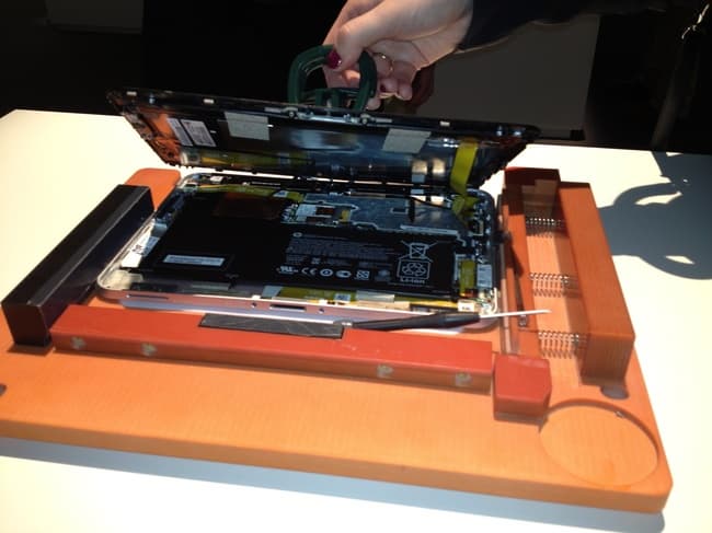 В частности, НР предусматривает возможность легкой разборки устройства. Например, для ремонта или изменения конфигурации. Насколько я знаю, такую легкость разборки (и особенно — наличие специального стенда для этого) не обеспечивает ни один другой планшет.