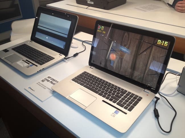 На одном из стендов стояли новые ноутбуки Envy 17 с технологией Leap Motion, которая позволяет управлять ноутбуком с помощью жестов. Это можно использовать либо для управления некоторыми функциями (например, перелистнуть страницу или текст) либо в играх.