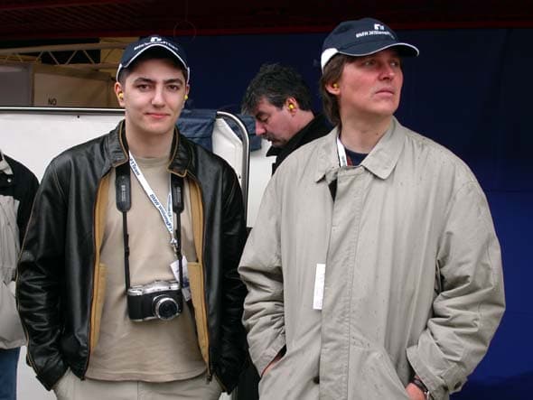 В то время как пилоты Формулы 1 тестируют своих стремительнейших железных коней, фанаты BMW WilliamsF1 внимательно следят за прохождением трассы младшим Шумахером. Очевидно, наиболее лучшие снимки болидов с логотипом HP можно сделать только камерами HP: на груди одного из наблюдающих за гонкой — камера Photosmart 912.