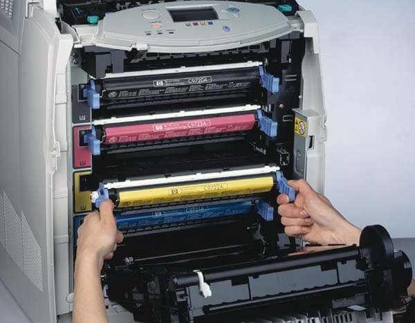 О HP Color LaserJet 4600 мы рассказывали в репортаже конференции HP Labs. Данные устройства начали поступать в продажу еще в июне. Реализованное оригинальное устройство принтера, дает возможност наносить все цвета на бумагу за один проход. Благодаря чему пользователь получает ту же скорость печати (16 страниц в минуту), что и при печати черно-белого документа.