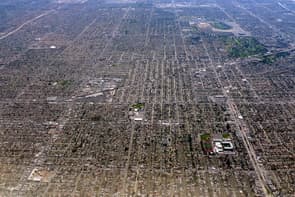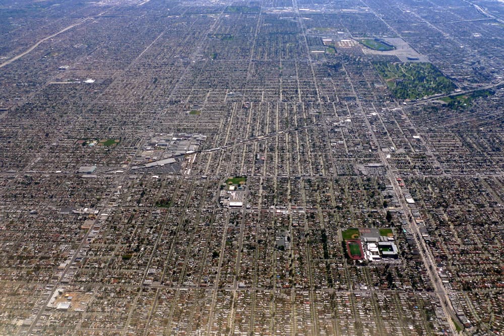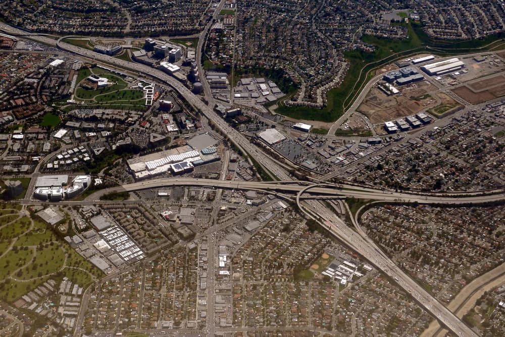 Постепенно пейзаж стал приобретать более урбанистический вид, появились развязки и автострады, а потом и вовсе приобрел паралельно-перпендикулярный вид из домов, улиц, авеню и бульваров, столь привычный для современных городов США.