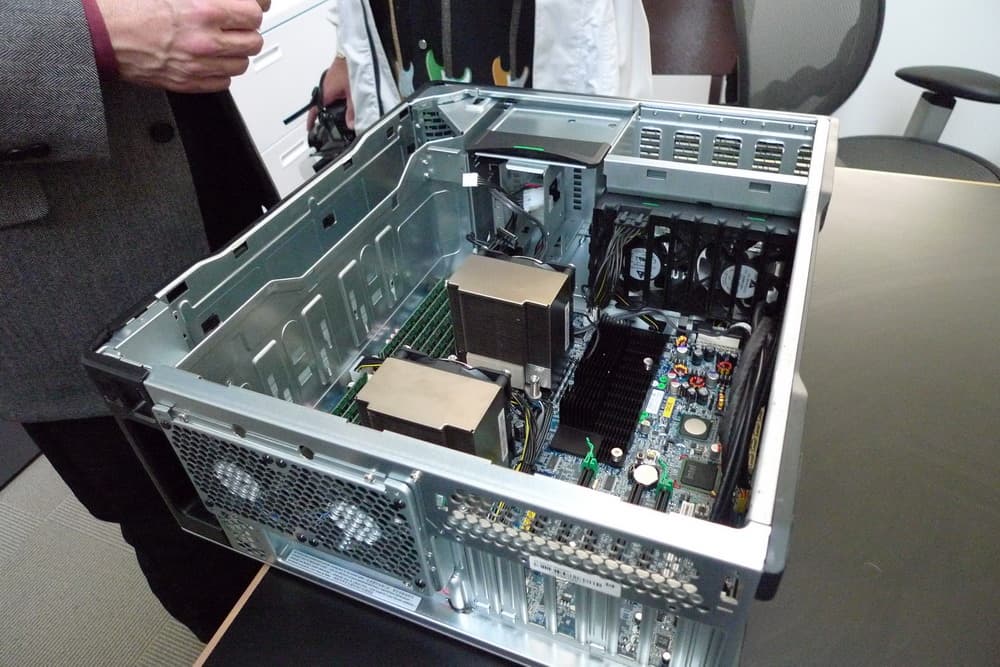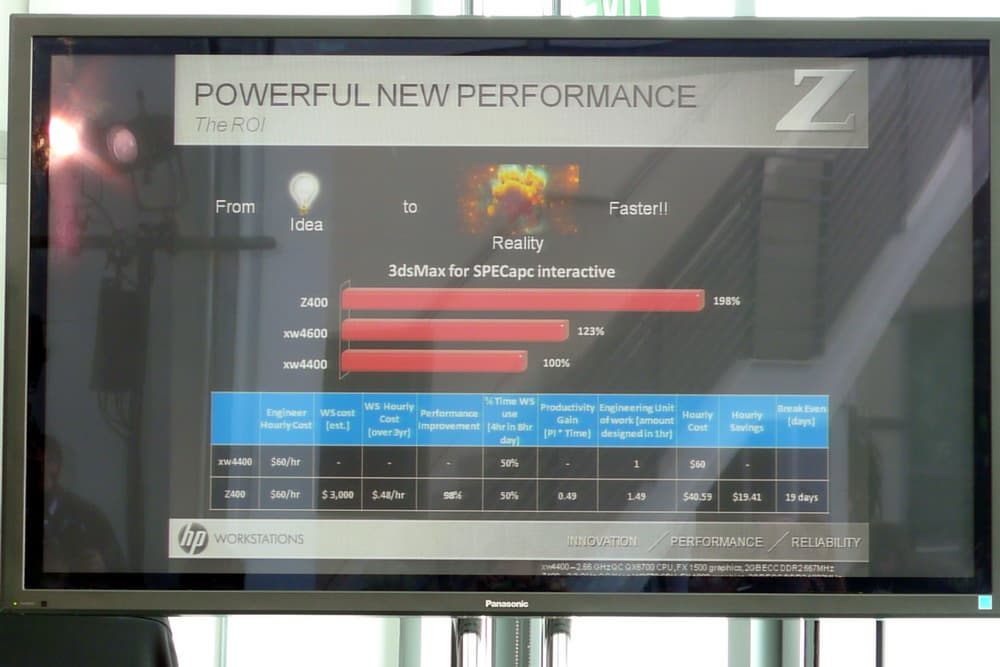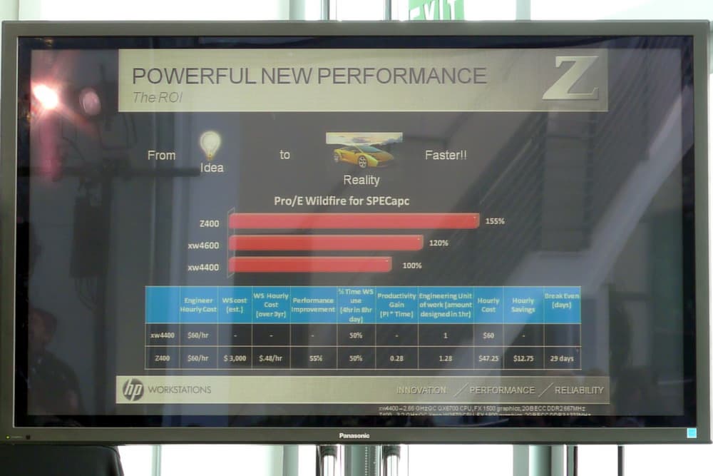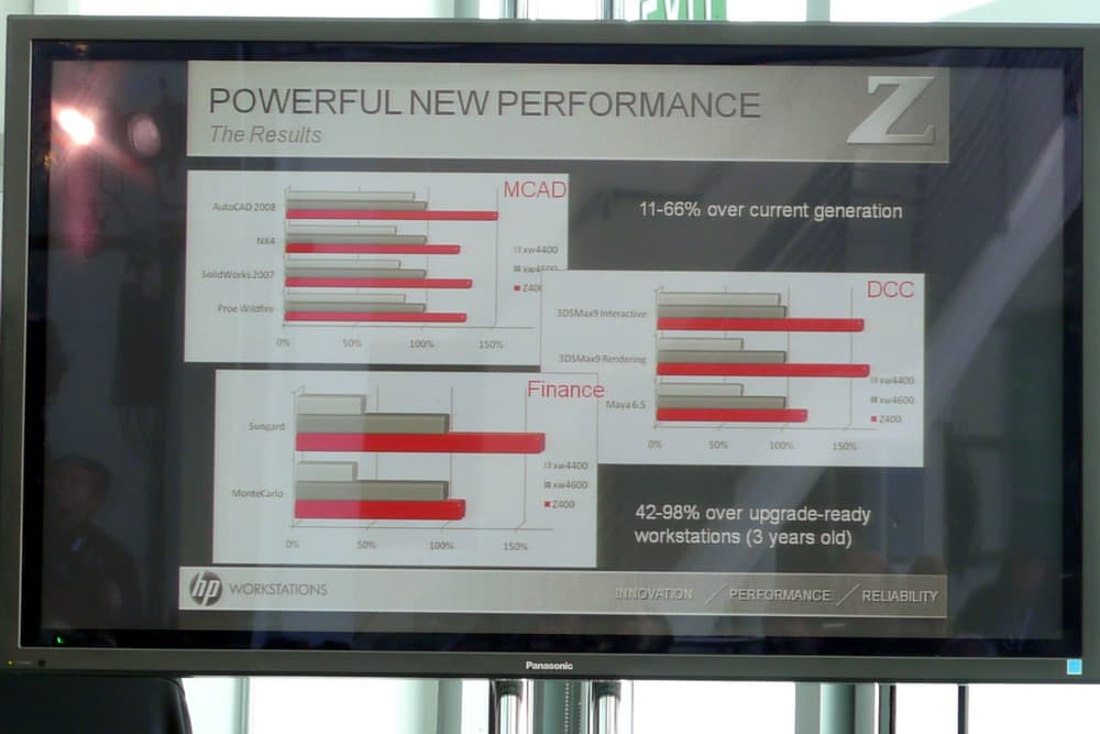 Корпорация HP одной из первых практически одновременно с запуском прогрессивных CPU Intel представила свою самую производительную систему на их основе. Ей стала Z800, построенная с использование двух самых мощных процессоров Xeon 5580, работающих на тактовой частоте 3,2 ГГц. Новую систему в зал буквально внёс Терри Пилзнер (Terry Pilsner) — вице президент по разработкам, который непосредственно руководил созданием новой серии рабочих станций. Удобная конструкция системы позволяет легко переносить систему, для чего у её корпуса предусмотрены ручки, являющихся частью крепкого корпуса.