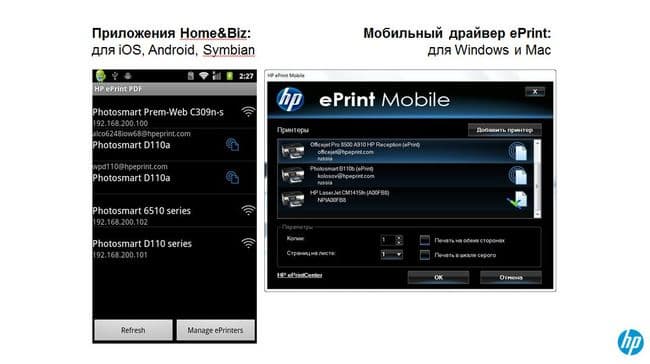 Технология ePrint позволяет печатать из любого места и с любого устройства, в том числе и с мобильных устройств. Хотя теперь у владельцев принтеров НР и мобильных устройств появились новые возможности: