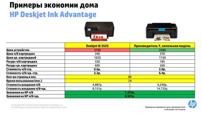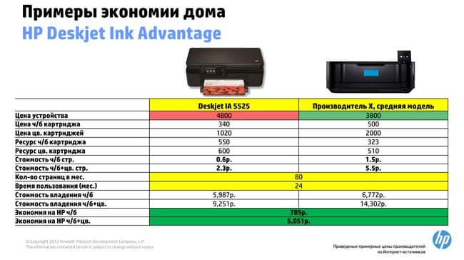 Здесь экономия еще более впечатляющая, особенно для цветных чернил.