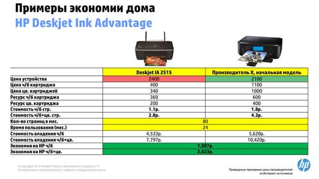 По словам выступающих, принтеры, печатающие головки, картриджи или состав и технология чернил существенно не перерабатывались. Таким образом, суть Ink Advantage фактически в новом балансе емкости и стоимости картриджа. Компания НР решила оказаться от традиционного пути завышения цен на картриджи, который сейчас представляется тупиковым, и сыграть с покупателями своей техники в открытую.