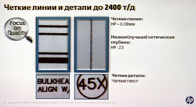 Возросшая четкость очень положительно сказывается и на качестве выводимой на печать графики, хотя на презентации специально подчеркивали, что графика не является основной сферой применения принтера.