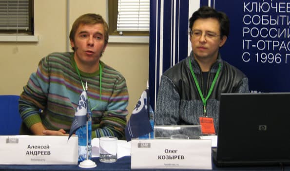 После официальной части открытия i-СМИ работа конференции продолжилась, как мы уже отметили выше, в трех параллельных потоках, каждый из которых был разделен перерывами на кофе, на три полуторачасовые секции. Первый поток был посвящен круглым столам по правовым вопросам, второй — выступлениям по кадровой теме, привлечению аудитории и монетизации контента, а третий, который мы и решили посетить, включал секции «Веб 2.0», «Медиаконвергенция» и «Технологии для СМИ». Проводил его Алексей Андреев, главный редактор «Вебпланеты». Забегая вперед, скажем, что ведущему не всегда удавалось склонить докладчиков к конкретике, впрочем, интересного все равно было не мало.
