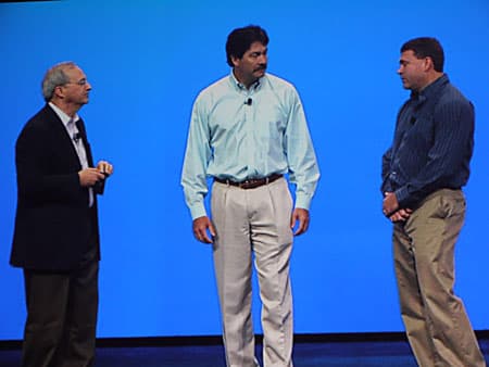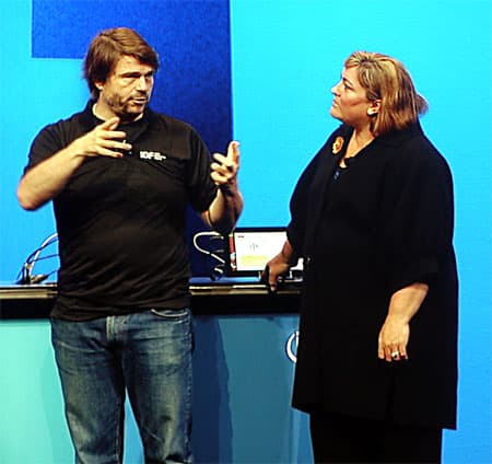 На сцену вышли Chris Neisinger (Крис Нейсингер), исполнительный директор, отвечающий за развитие сетевой инфраструктуры Verizon Wireless, и Jeff Foerster (Джеф Фоэрстер), ведущий инженер Intel Labs.