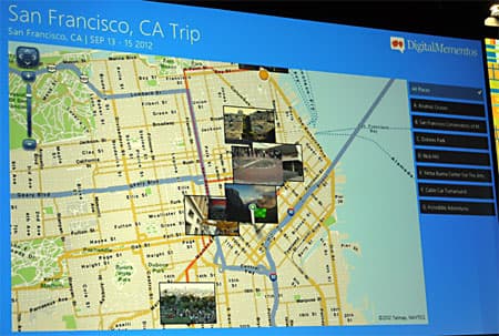 Затем на сцене продемонстрировали пример такого кроссплатформенного приложения под названием Digital Mementos. Суть приложения простая. Предположим, вы решили поехать в Сан-Франциско и планируете на своем ПК поездку, пишете сообщение другу, что хорошо бы встретиться.