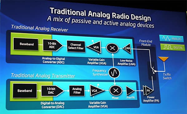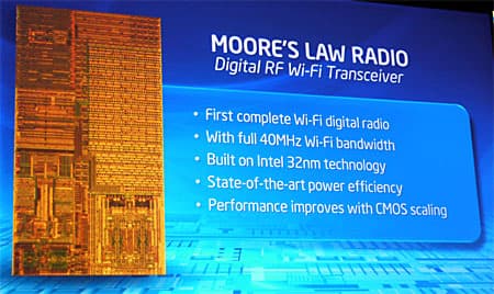 Настоящим достижением является разработка и создание полностью цифрового радиомодуля Wi-Fi, работающего с полосой 40 МГц и произведенного по 32-нанометровому техпроцессу: