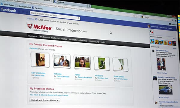 У McAfee есть решение для такой задачи. Вам достаточно внести друзей в список пользователей, которым вы доверяете, они получают специальный код на свои компьютеры, который обеспечивает им доступ к вашим фото, а все остальные смогут лишь увидеть фото на экране, но не смогут их распечатать или скопировать. Осталось лишь убедить всех использовать решение McAfee. Ну и, конечно, интегрировать поддержку такой защиты на стороне социальной сети.