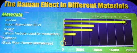 Использование кремния в качестве материала для создания лазера и для многократного усиления ИК-излучения (благодаря гигантскому, примерно в 20000 раз эффекту Рамана),