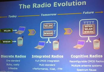 Эволюция радио сейчас происходит по пути объединения в одном устройстве систем нескольких стандартов — например, WPAN, WLAN и WWAN. Сейчас у Intel уже есть кристалл, объединяющий в себе WLAN и WWAN, но для более универсальных систем необходимо создать многоантенную конфигурацию с повторным использованием спектра.