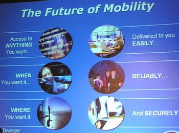 Эта объявляемая на IDF новая система является плодом пятилетних исследований, поддерживает Wi-Fi и 3G SIM, и уже начала апробацию в различных регионах мира (Сингапур, Стокгольм, Женева, Лондон, Сан-Франциско). Она послужит прототипом для будущих систем с WiMAX.