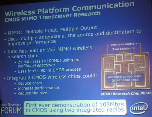 Около года назад Intel на одной из профильных конференций демонстрировала кристалл CMOS MIMO (много входов и выходов) и сейчас корпорация готова представить свое новое достижение:
