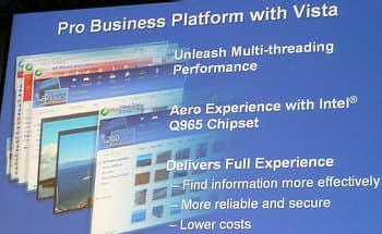 Кратко была показана операционная система MS Windows Vista, работающая на будущем чипсете Intel 965G Express (с поддержкой ядра Conroe),