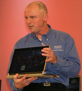 Продемонстрировав для разогрева публики несколько очень симпатичных миниатюрных концептов ПК на базе двухъядерных процессоров Intel Core Duo с малым энергопотреблением,
