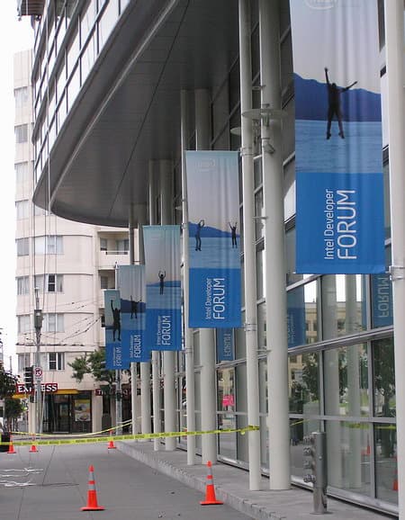 Взгляд сразу отмечает некоторую смену оформления IDF — с непривычки привлекает внимание новое написание имени компании, а все надписи теперь выполнены новым корпоративным шрифтом — в соответствии с произведенной в январе этого года сменой «имиджа» компании.