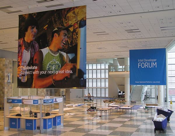 такой, что новый логотип Intel приходится выклеивать несколькими большими листами.