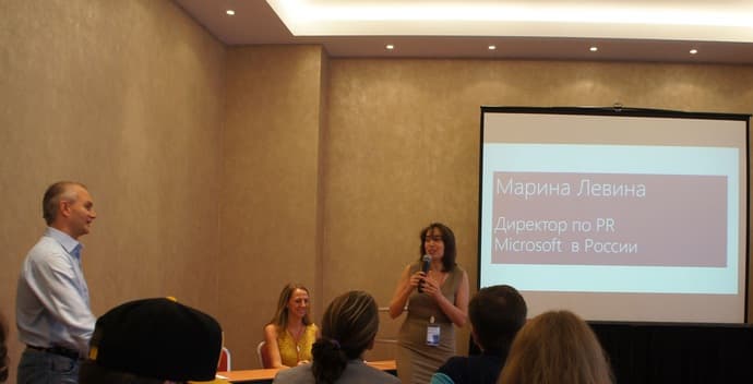 По словам Марины Левиной, главы пиар-службы Microsoft в России (кстати, примерно о том же говорил в своем выступлении и Николай Прянишников), одна из основных задач этого и аналогичных мероприятий для Microsoft — популяризация рынка в целом. Пробуждая интерес к рынку ИТ и работе на нем, стимулируя разработчиков самого разного уровня активнее участвовать в создании новых приложений, компания Microsoft развивает рынок в целом. Чем больше ПО создается и выходит на рынок, чем оно разнообразней и чем больше задач помогает решить, тем лучше для рынка, тем шире проникают компьютеры. А общий рост рынка, повышение к нему интереса, его развитие уже выгодно Microsoft, чья операционная система и приложения установлены на подавляющем большинстве компьютеров.