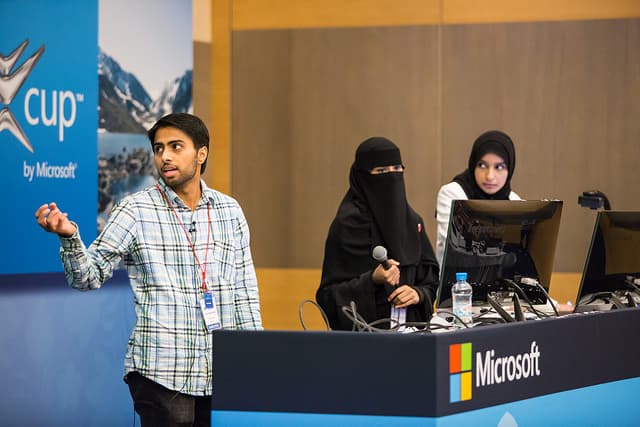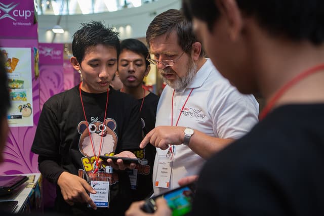 Таким образом, компания решает скорее не задачу развития рынка, а задачу относительно недорогой подготовки кадров для работы в своей экосистеме. В этом году с конкурсом связано было до 500 000 человек (называлась и такая цифра). Значит, все они в той или иной степени, во время подготовки проектов, знакомились и работали, т. е. набирали опыт, с технологиями Microsoft и современными платформами для приложений, ПО типа Visual Studio и т. д. Таким образом, по окончании конкурса, даже если они никуда не попали и ничего не выиграли, у них есть опыт работы именно под эту платформу. Раз есть опыт — значит, есть шанс попасть на какую-нибудь должность в компанию по… угадайте, по какому направлению?