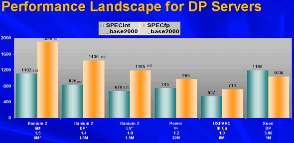 Напомню, что одним из главных тезисов, продвигаемых на презентации чипов с ядром Madison, стало преимущество новых процессоров совсем не в низкой стоимости систем, хотя, этот фактор также болезненно ударил по производителям RISC-процессоров; более важным фактором, называлось соотношение производительность/цена, что свело конкуренцию с современными процессорами IA64 к достаточно рискованной затее.