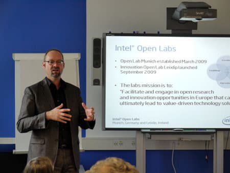 После посещения CERN мы переместились в офис Intel, расположенный недалеко от Мюнхена (Munchen) в городке Feldkirchen (Фелдькёрхен). Здесь работы ведутся по трем основным направлениям: активное участие в различных образовательных программах, инициатива Intel Open Labs и кооперация с автомобильной промышленностью.