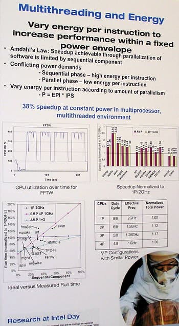 Проблема высокого энергопотребления многоядерных систем, безусловно, заботит разработчиков. В этой связи на экспозиции демонстрировалась, например, технология повышения экономичности и производительности серверных систем.