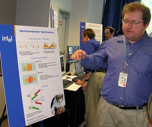Заметим, что к моменту внедрения 450-мм пластин Intel надеется освоить как минимум 22-нанометровый техпроцесс, но базовыми для новых «вафель» станут еще более «тонкие» техпроцессы с нормами 15 нм и 10 нм. С современных позиций такие, с позволения сказать, «нормы» кажутся нереальными (как лет 10 назад нереальными казались нынешние 90 нм). Но даже этим полет научной и инженерной мысли не ограничивается — в лабораториях уже вовсю идет работа над так называемыми спинтронными приборами на кремнии, и достижения в этой области Intel также демонстрировала на Research at Intel Day (не без помощи бывших российских ученых, теперь работающих в Intel ;)):