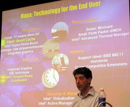 В составе платформы Napa будет несколько новинок, среди которых, разумеется, первый двухъядерный мобильный процессор Yonah, изготавливаемый по технологии 65 нм, чипсет Calostoga с набором новых функций (включая Intel Digital Media Boost) и улучшенной встроенной графикой, включая технологию Intel Dynamic Power Coordination для лучшей экономии заряда батареи, поддержка новых стандартов беспроводной связи серии 802.11, технологии Intel Active Management, Intel Virtualization и Intel Advanced Thermal Manager и другое.